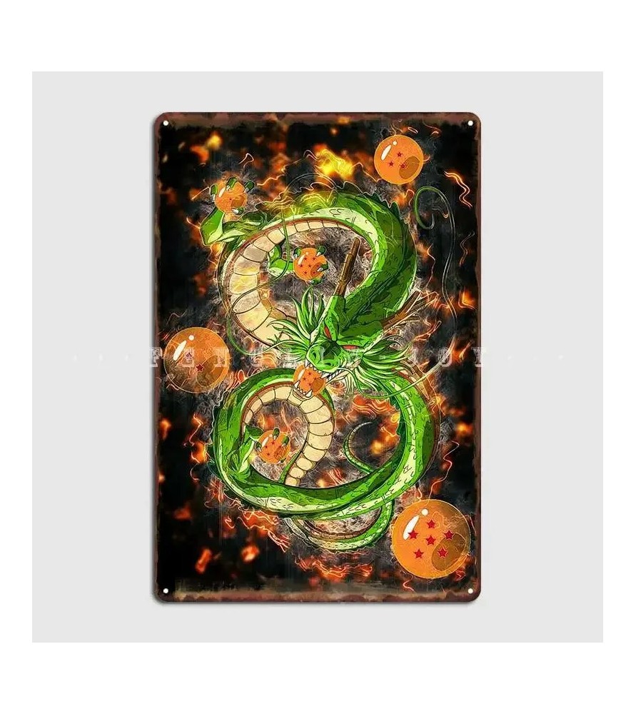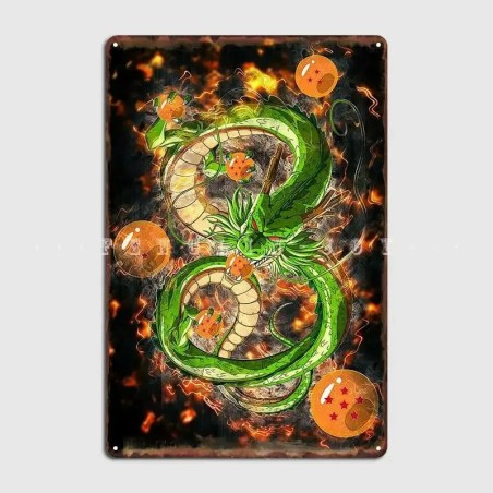 Irresistible cartel de metal con bordes redondeados, de 30 x 21 cms con Shenron y las Bolas de Dragón, inspirado en la popular serie.